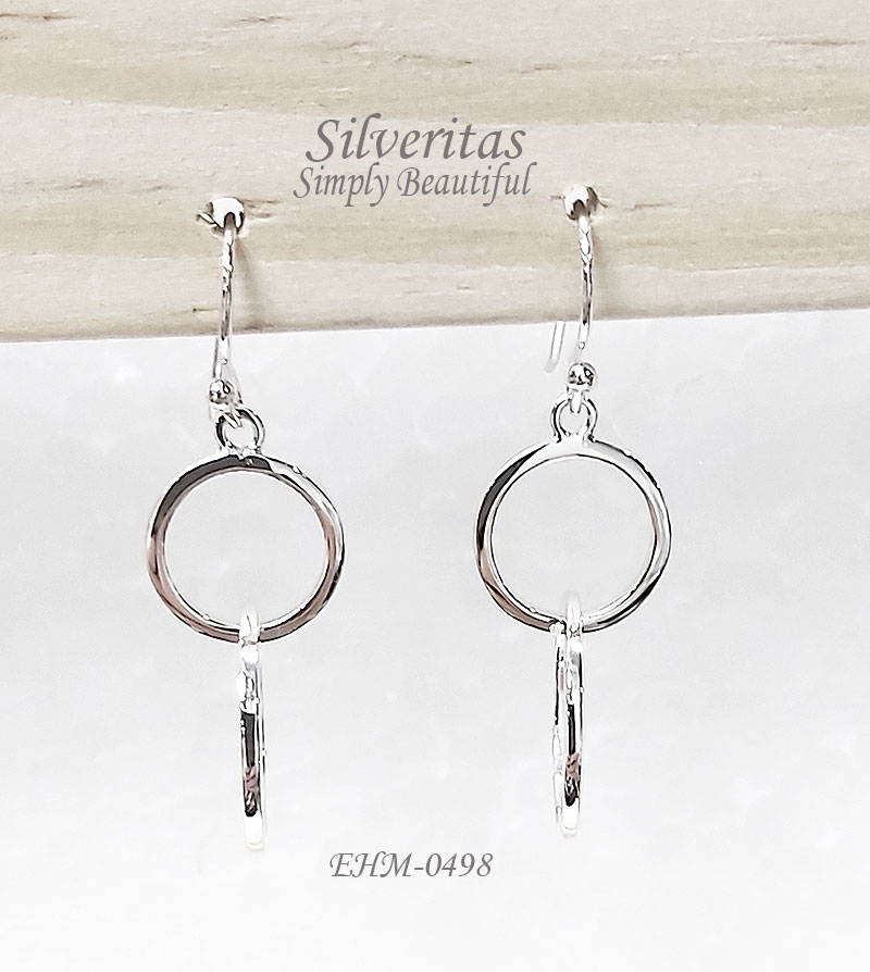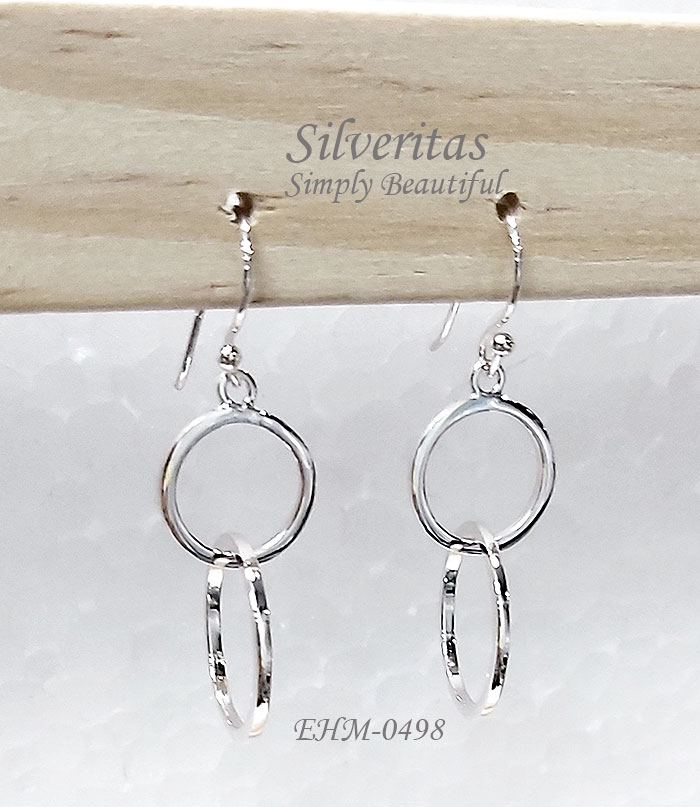 2 circles hoop dangling sterling silver earrings
