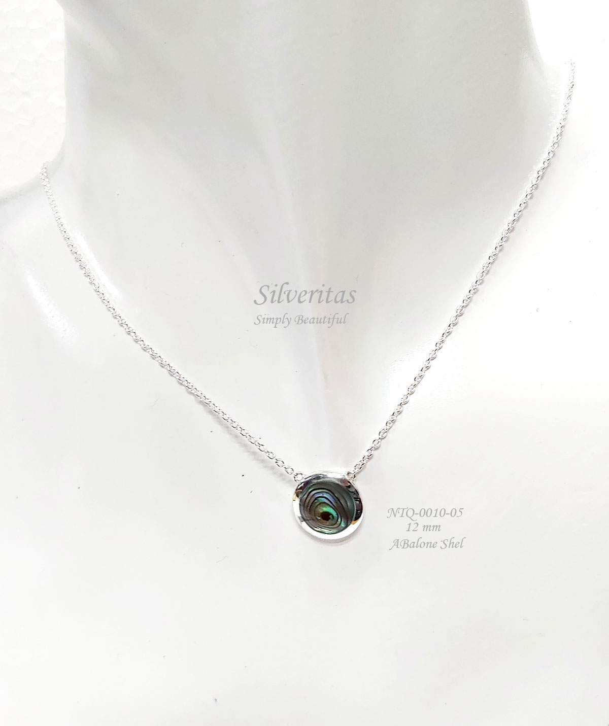 Sterling silver 925 necklace round shape stone pendant with abalone shell – NTQ-0010-05