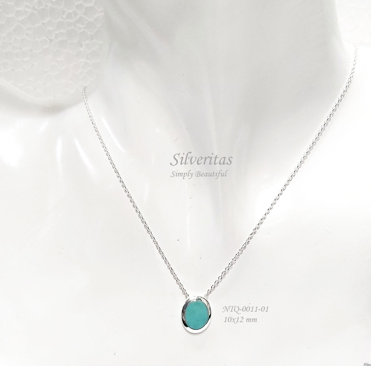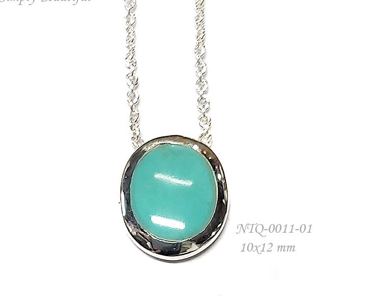 Sterling silver 925 necklace oval-shape stone pendant with synthetic blue turquoise color.