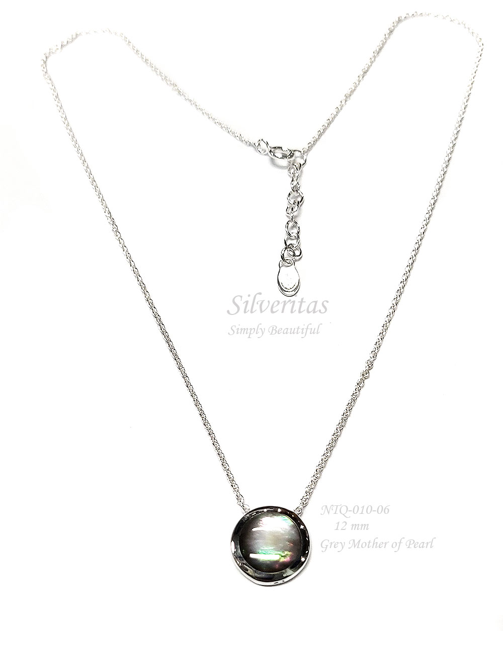 Silver Necklace with Grey MOP Round-shape12 mm – NTQ-0010-06