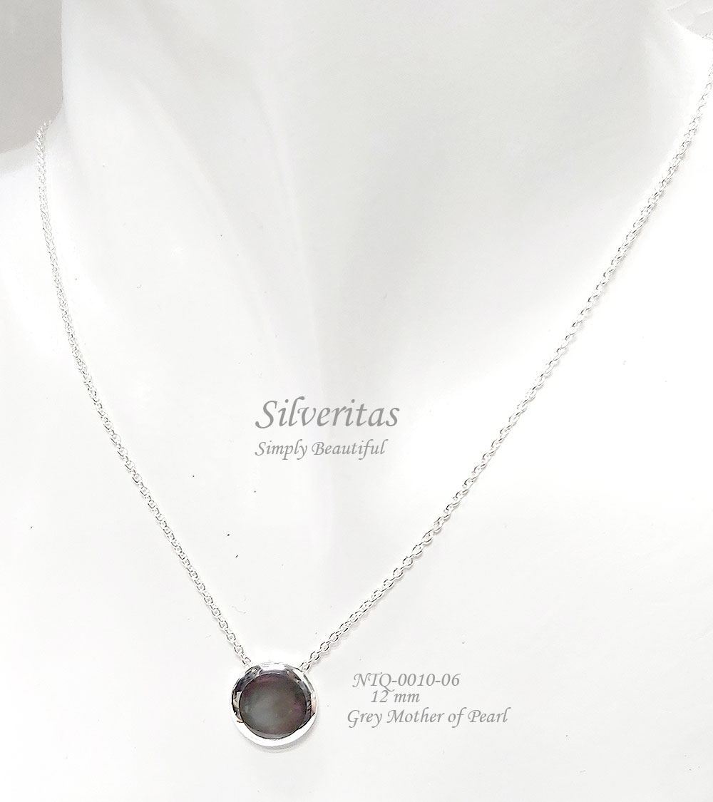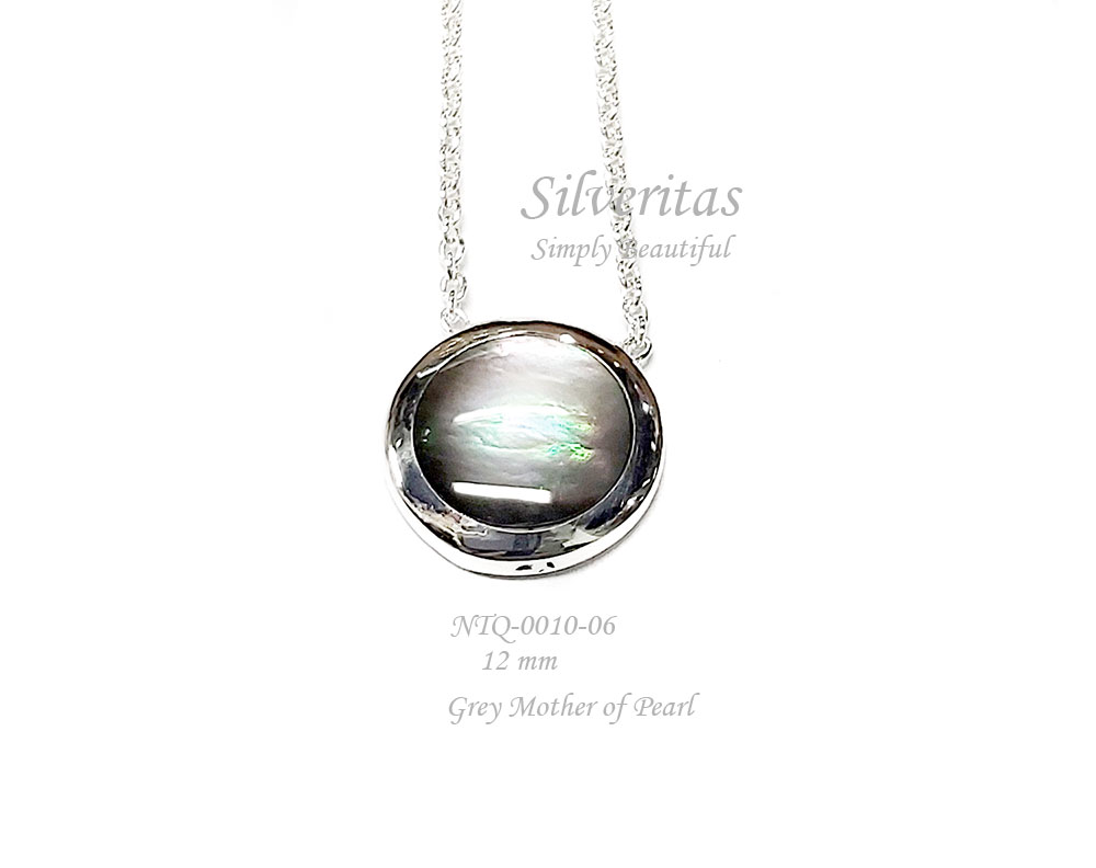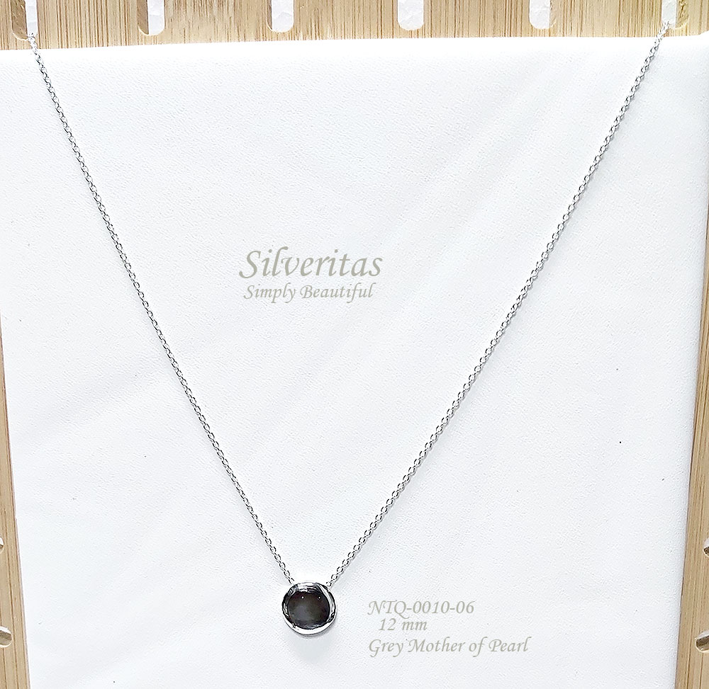 Sterling silver 925 necklace round shape with grey mother of pearlĀ  – NTQ-0010-06