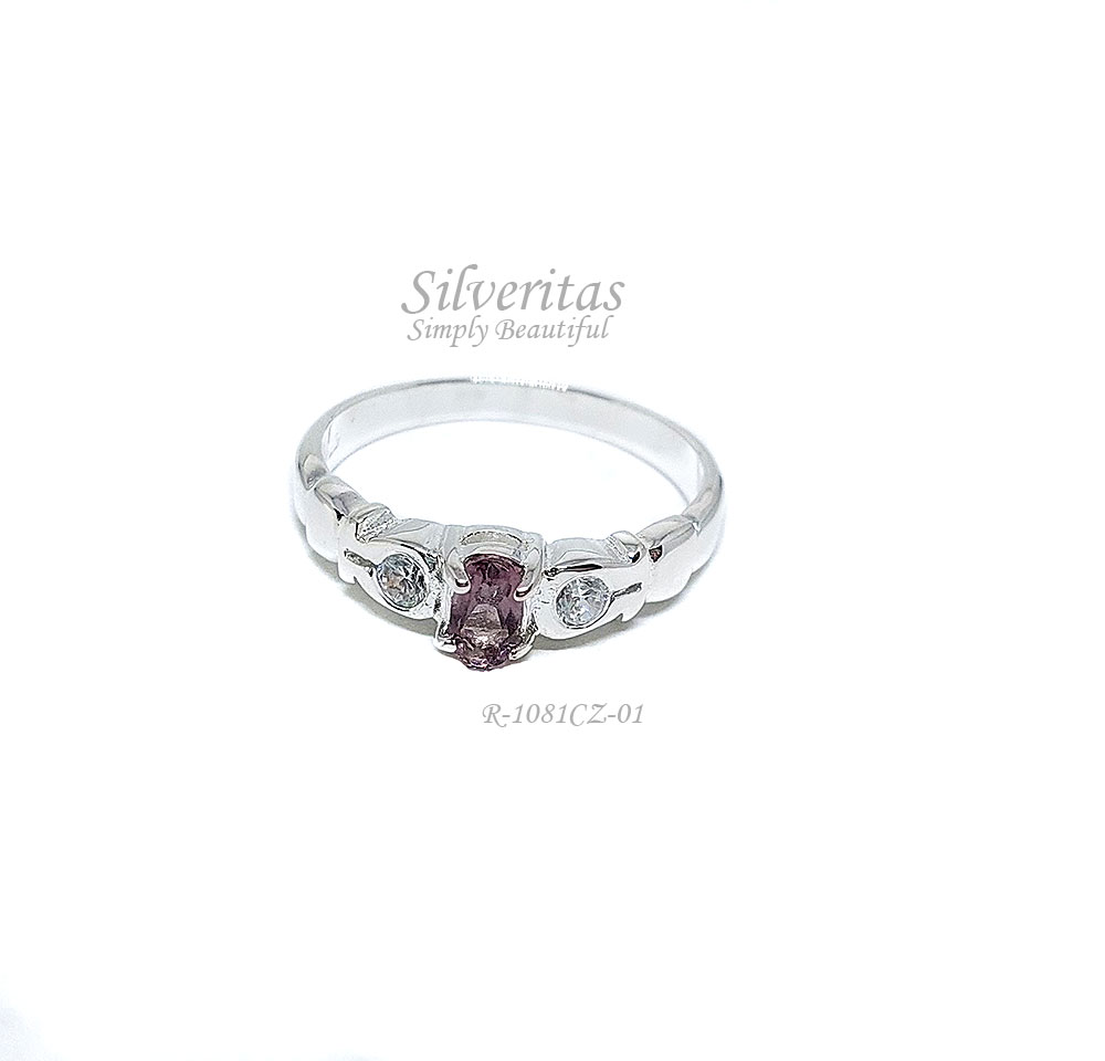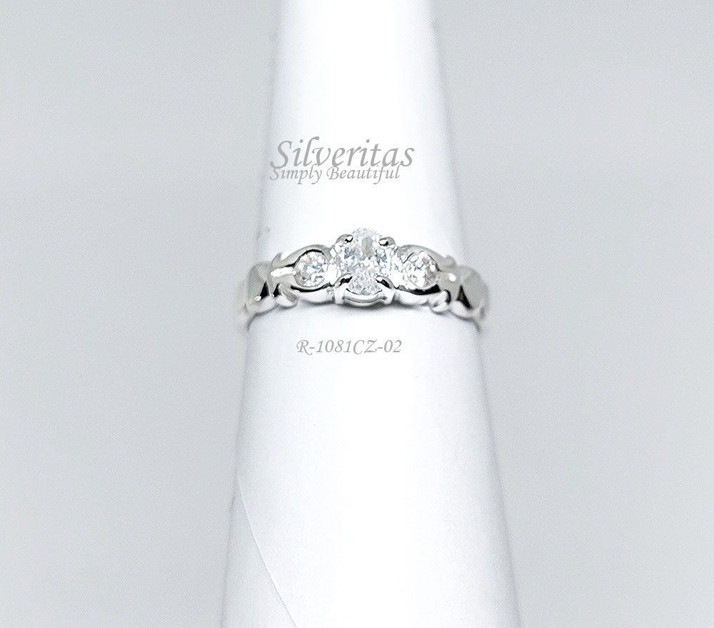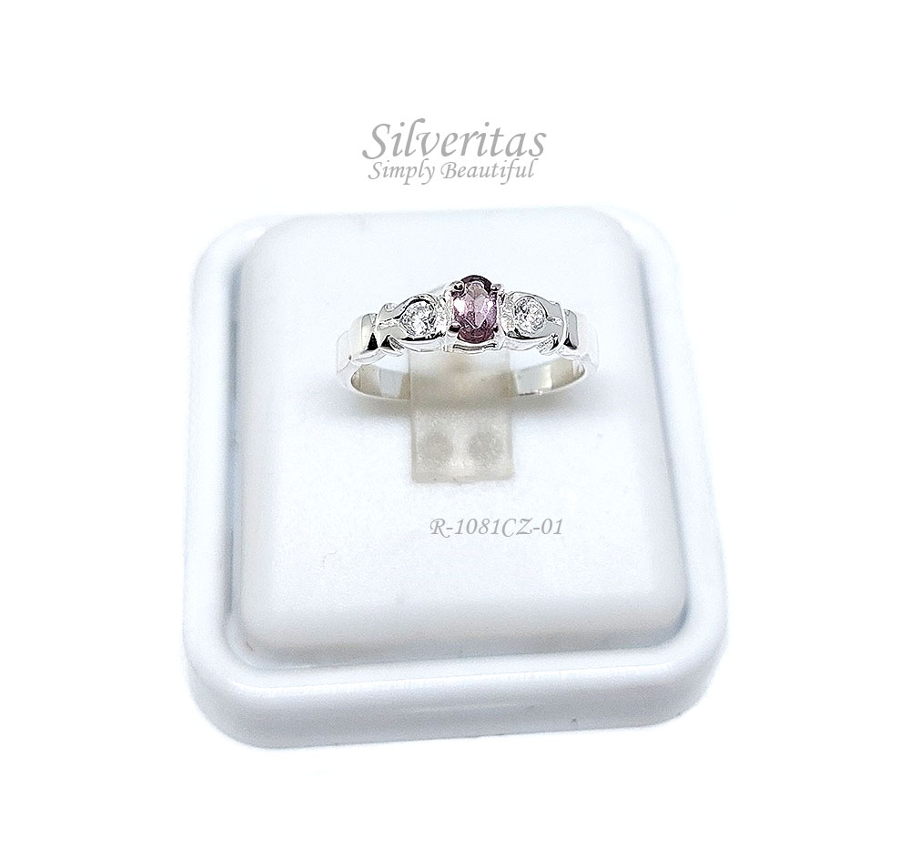 Sterling silver solitaire ring with 3×4 oval-shape CZ prong set . Suitable for daily wear or special occasion .