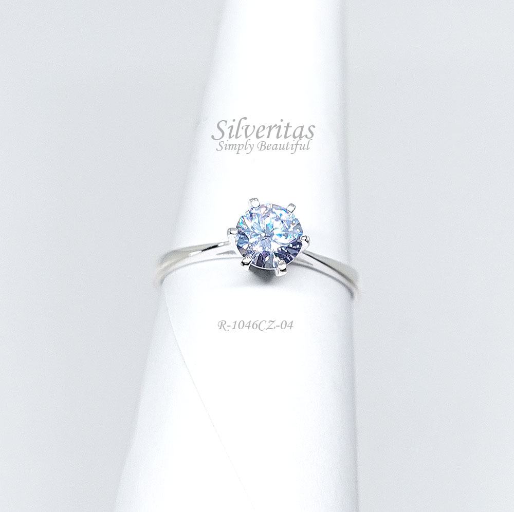 Sterling silver solitaire ring with 6 mm round CZ prong set . Suitable for engagement ring or special occasion for your love ones..