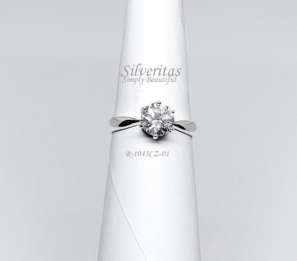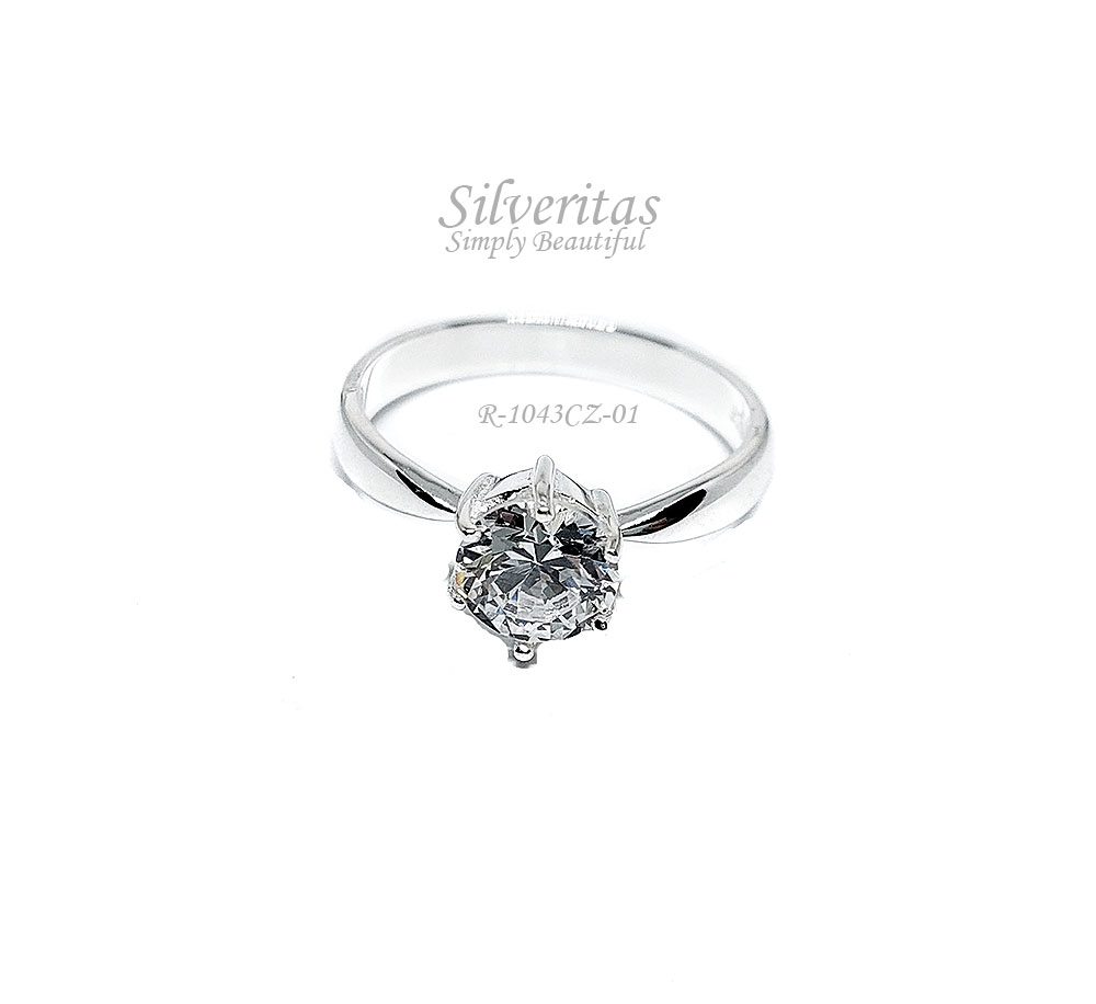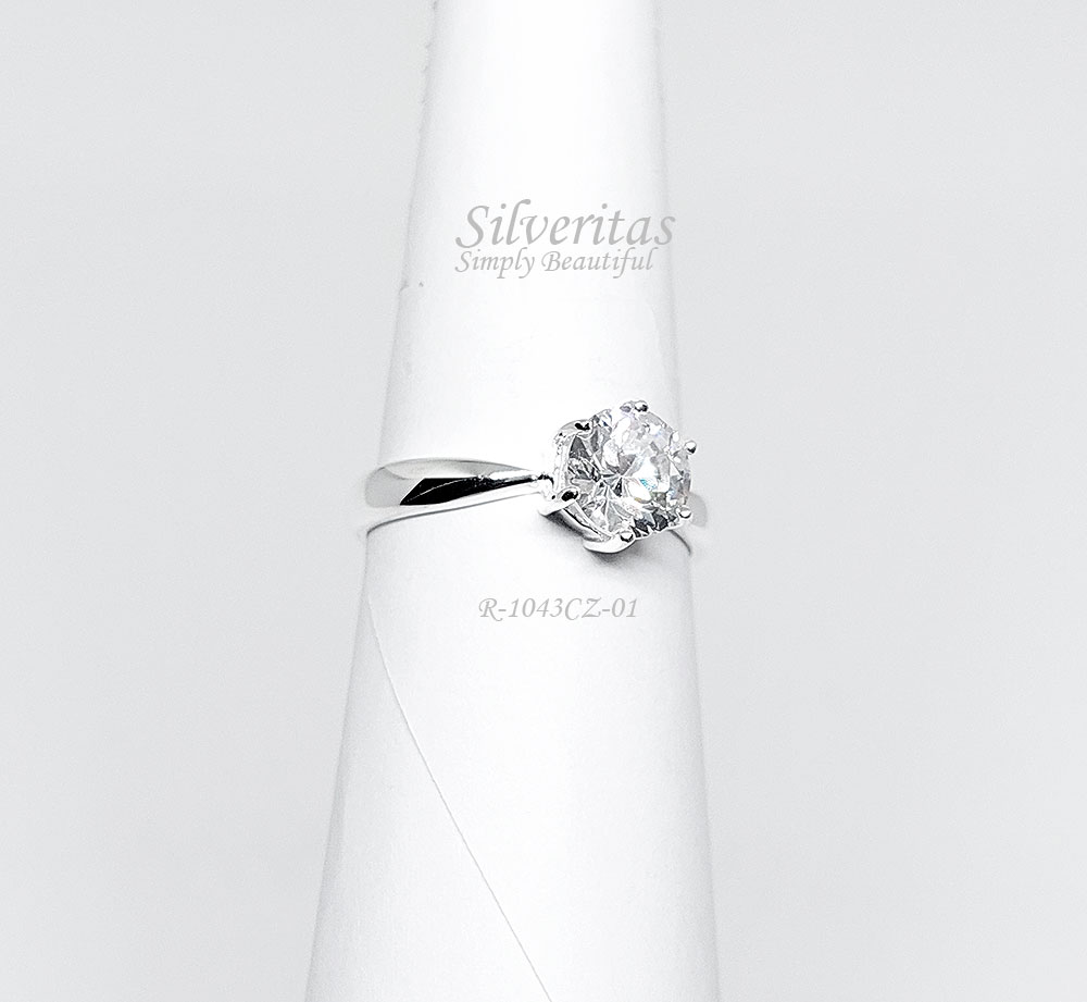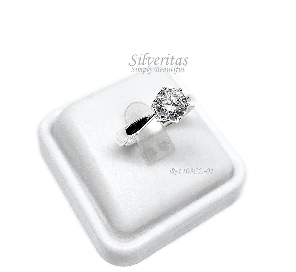 Sterling silver solitaire ring with 7 mm round CZ. Suitable for engagement ring or special occasion for your love ones..