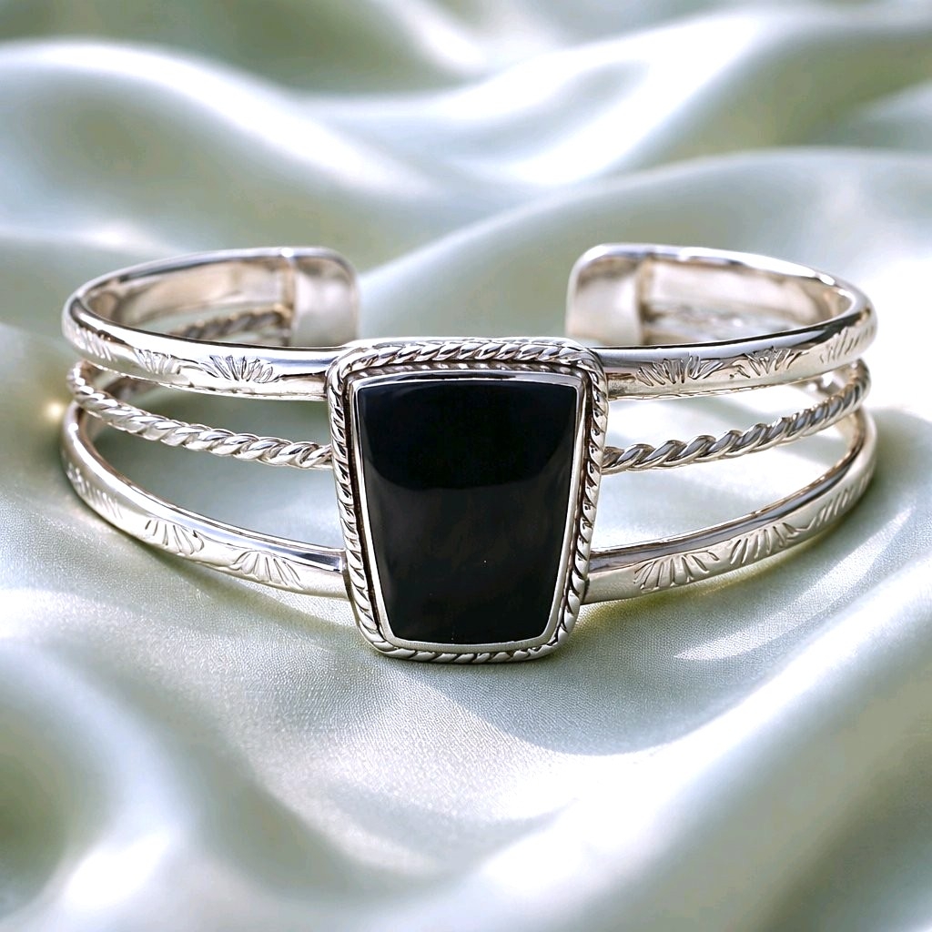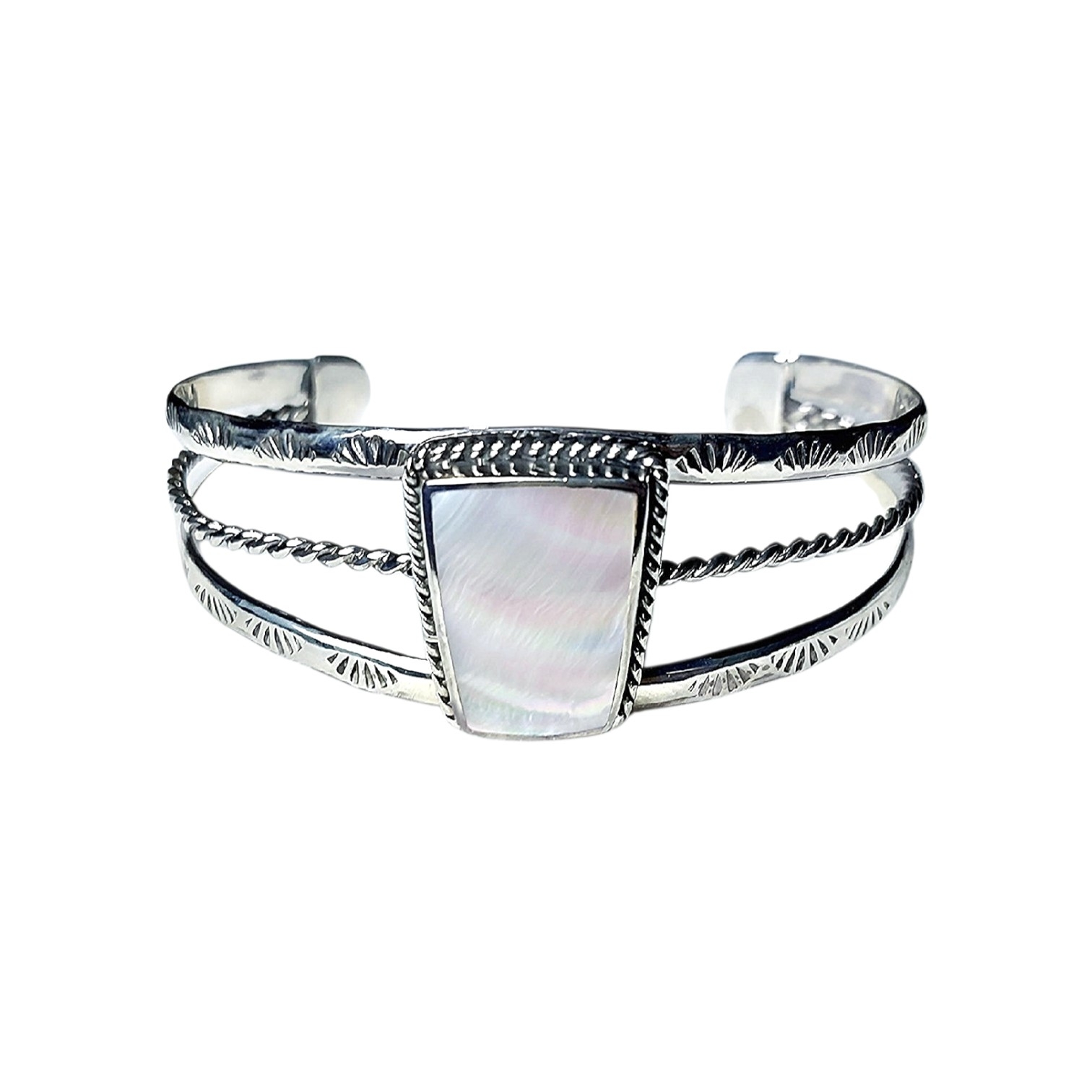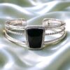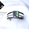 Sterling silver 925 bangle with Trapezoid shape and on top with bezel set stones or mother of pearls. the style fits on both men and women.